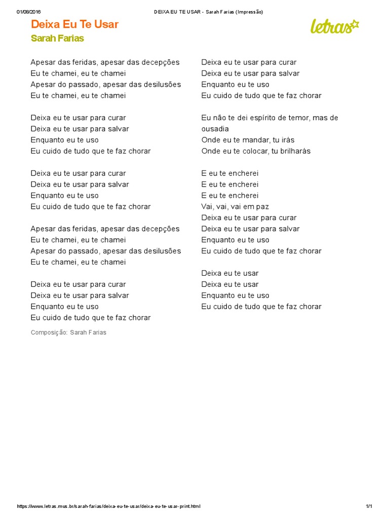 Deixa Eu Ti Usar Para Curar Baixar : Deixa Eu Te Usar Sarah Farias Letras Mus 6nq80kvdeqnw. Deixa eu ti usar para curar baixar : Deixa eu te usar para curar. Eu cuido de tudo que te faz chorar. Eu não te dei espírito de temor mas de ousadia,. Sarah farias deixa eu te usar musica 2021, 30 melhores canções e letras do sarah farias sarah farias deixa eu te usar musica 2021 download apk free.